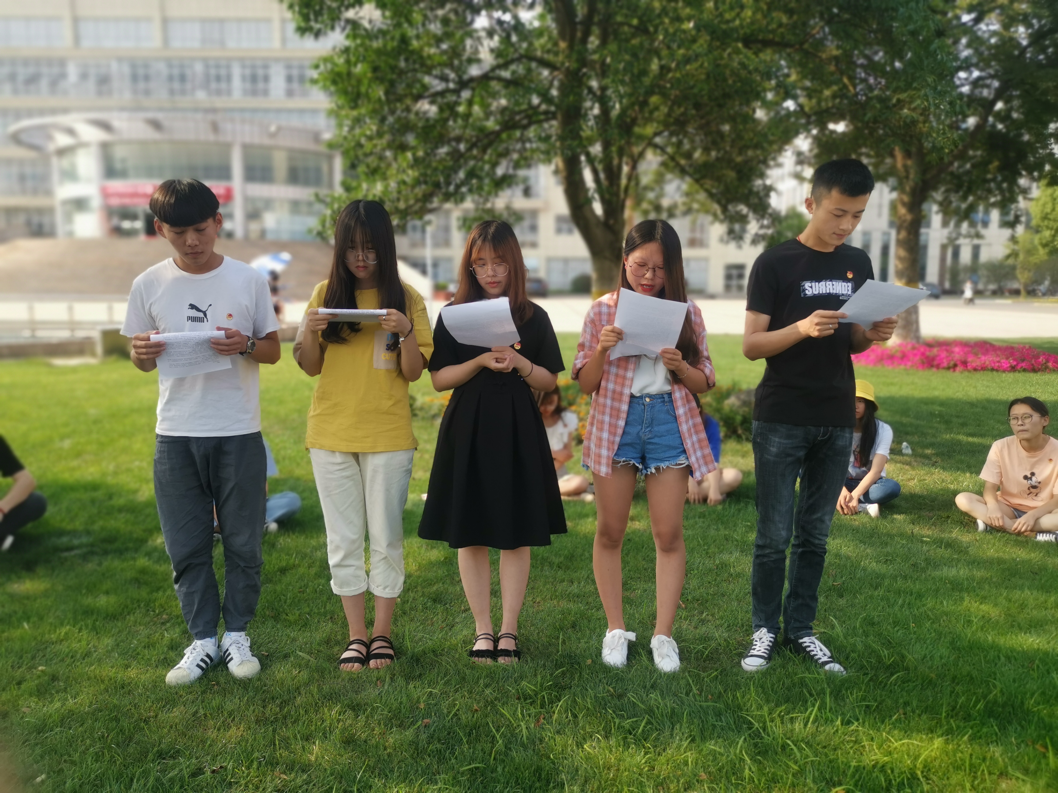 团委的部分学生代表在图书馆前的草坪上,自发组织了关爱父亲“五个一”活动,即用一句吐槽父亲的话,一首朗诵父亲的诗,一首歌唱父亲的歌,一个发给父亲的红包,一句送给父亲的祝福。