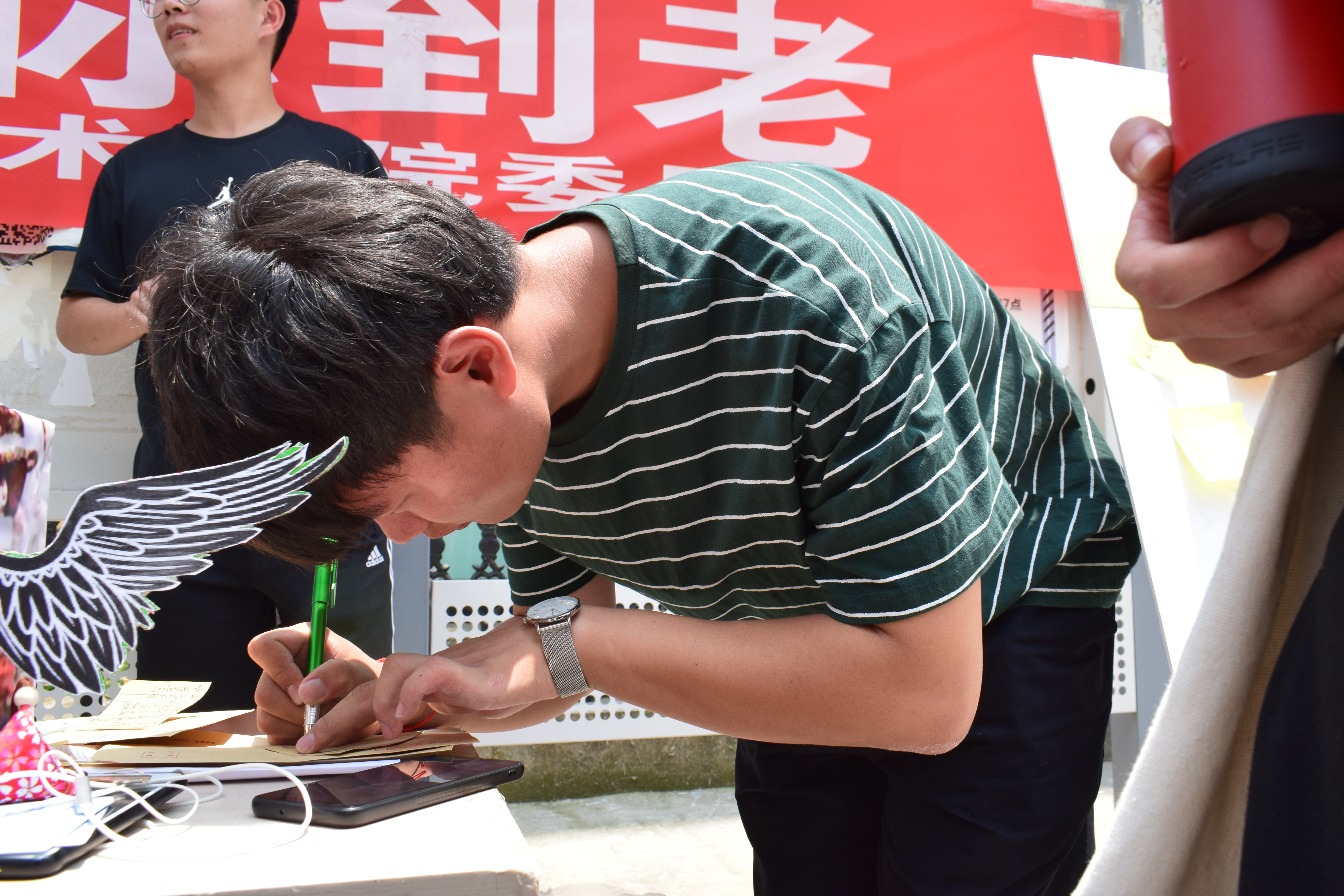 6月14日,为庆祝即将到来的父亲节,由团委主办的“你背我长大,我伴你到老”父亲节活动在食堂门口成功举行,现场共有400多名同学参加了此次活动。
