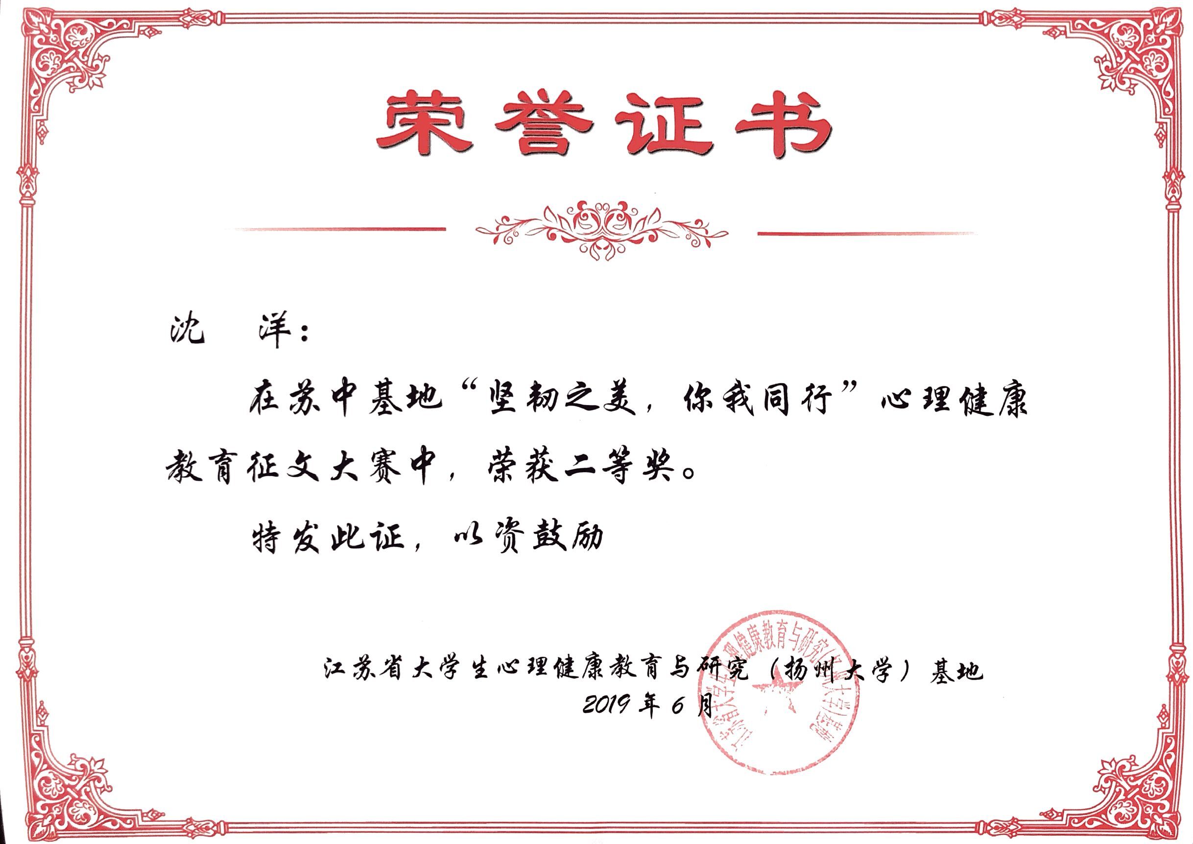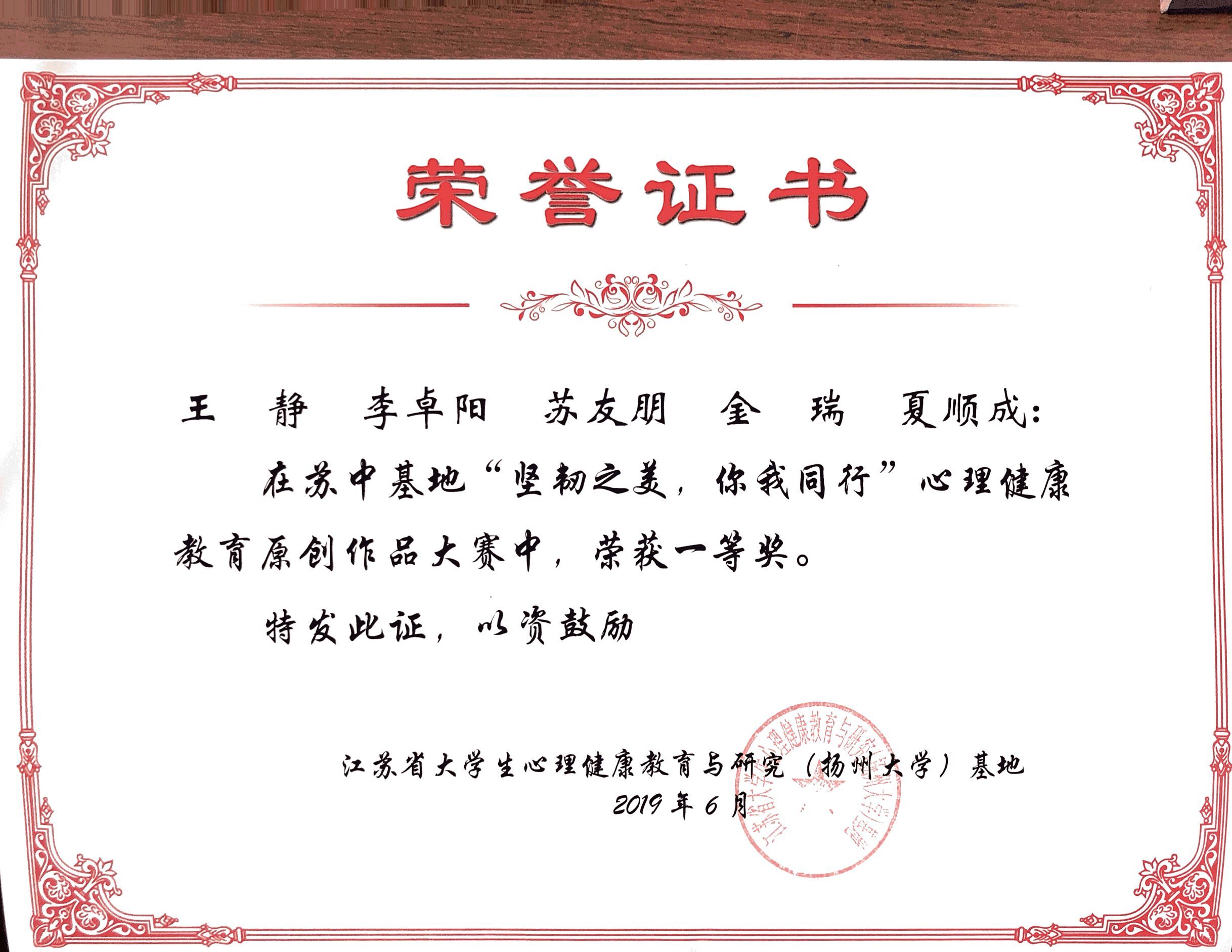 近日,根据《省教育厅关于在全省高校开展“坚韧之美,你我同行——大学生心理健康教育江苏行”主题教育活动的通知》(苏教学函﹝2019﹞3号)要求,苏中基地开展了“坚韧之美,你我同行”大学生心理健康教育系列作品征集与评选活动。