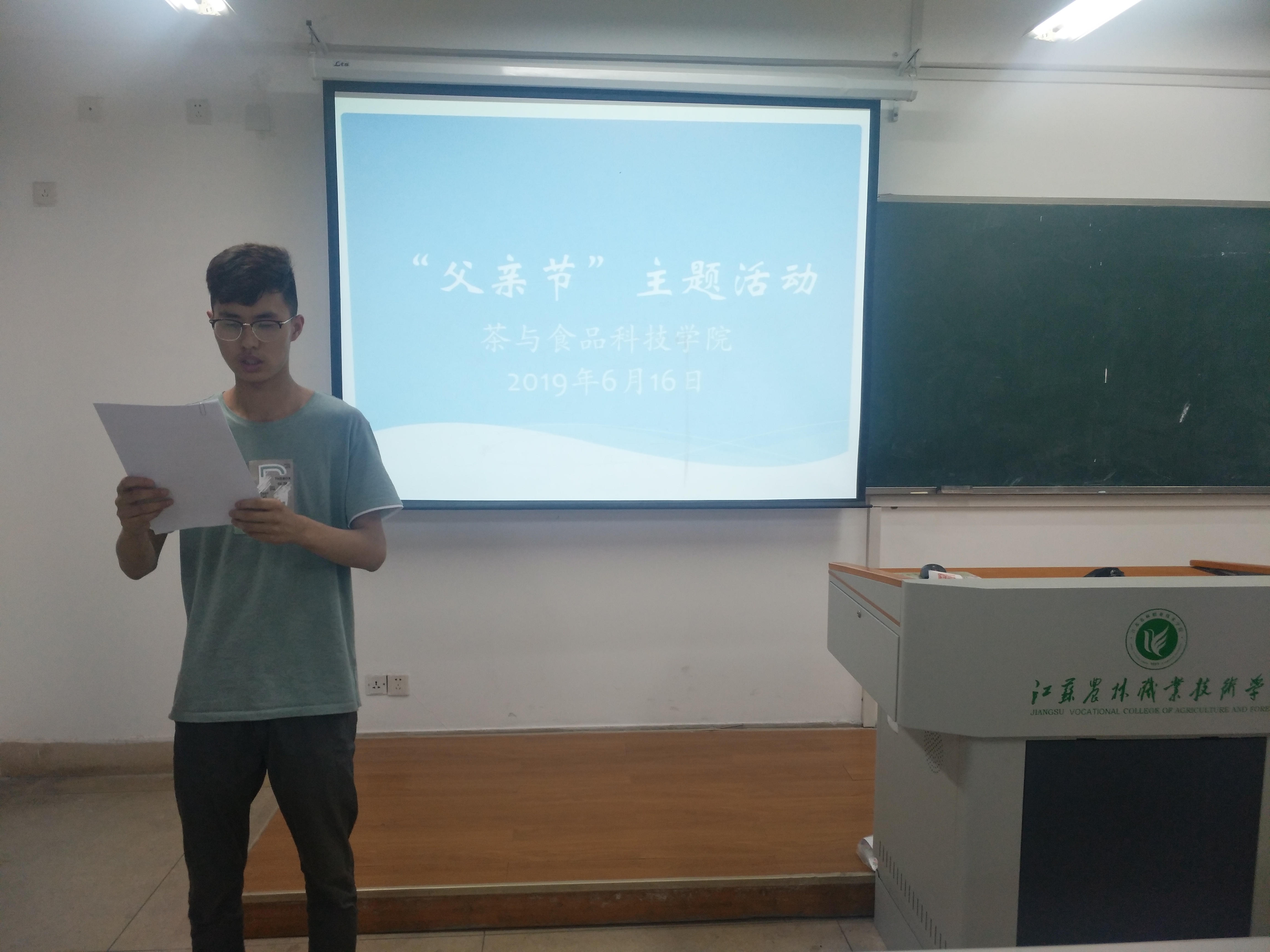 6月16日晚,茶与食品科技色花堂 团委在北校区开展了“浓情六月 感恩父爱”父亲节主题活动,全体学生参与了本次活动,表达了对父亲的爱意。