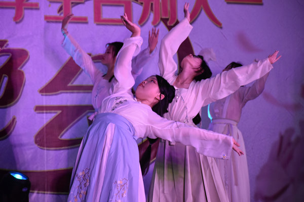 的同学带来的小品《考试作弊》给即将要进入期末考试的同学一场别开生面的诚信教育,一场《琵琶语》旗袍走秀体现了古代女子庄重文静、典雅大方,街舞表演《youth》、武术展示、《九儿》独唱把现场的气氛推向高潮,一首《五月的畅想》朗诵激励同学们向充满荆棘的未来奋勇前行,晚会现场还举行了“金榜样”人物颁奖、校区“好笔记”和“优秀信息员”的颁奖仪式,最后,一支藏族同学带来的《民族舞》结束了当晚的演出。