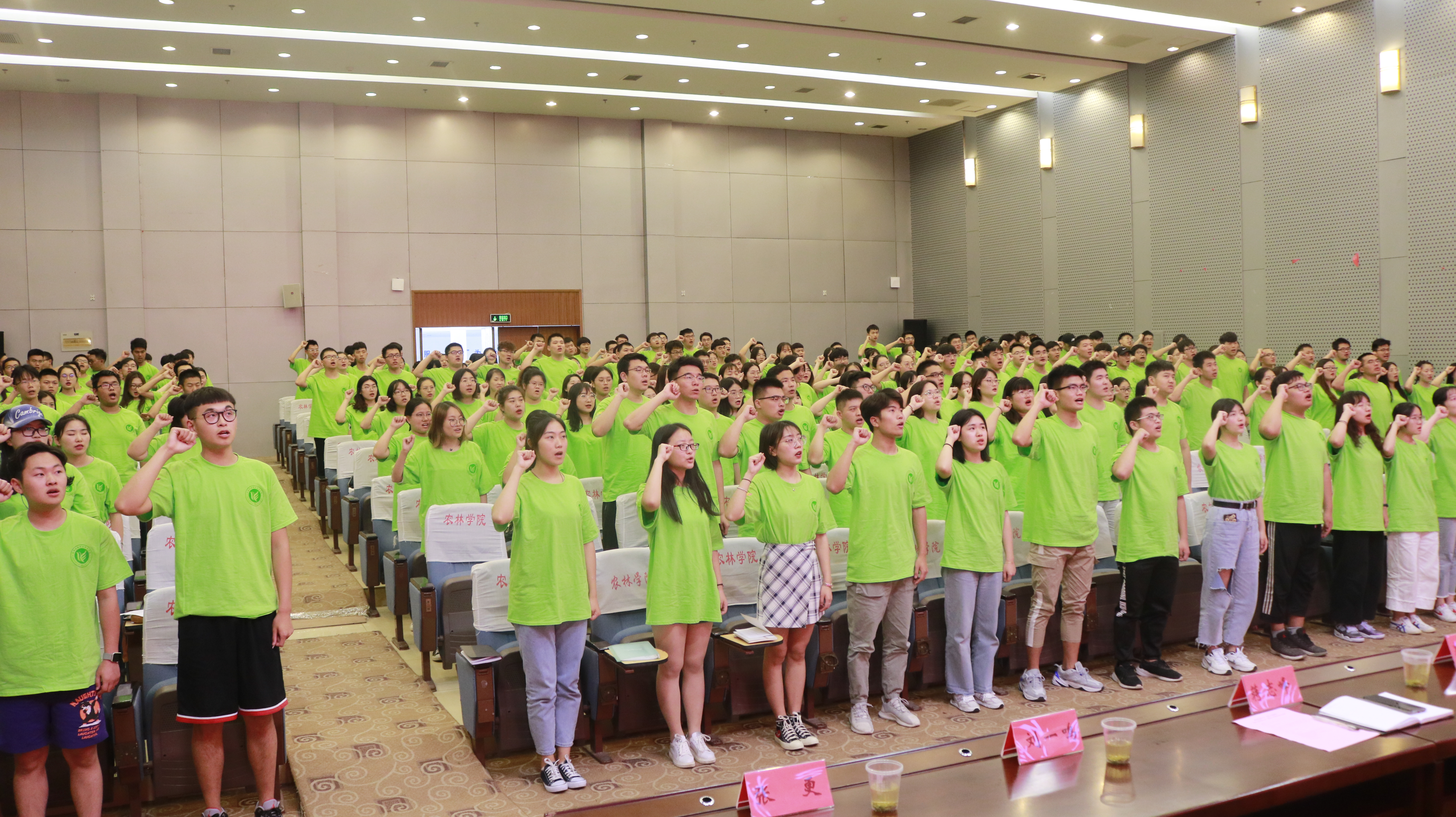 党总支书记杨宝林表达了对同学们的殷切期待。陆佳琦同学代表实践团队进行了表态发言,244名定制村干班进行了集体宣誓。颜志明院长为16个新禾助农小分队授旗。