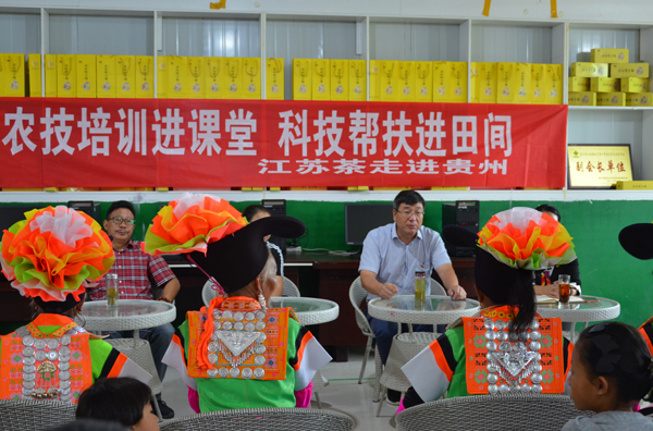 7月19日—20日,因为一片叶子,“校政行企”齐助力,苏茶黔茶共奋进。江苏茶产业体系首席专家王润贤教授携江苏知名茶企走进贵州长岩助力我院“重走长征路——一片叶子从大山里走来”三下乡暑期社会实践活动,在农技培训课堂上,王教授从茶叶生产加工、茶园经营管理等方面讲述了茶基本知识,濛江街道人大党工委石尚梅主任从长岩村老百姓生活变化的角度上了一堂生动的党课。同时,石主任为我院学生授牌“色花堂