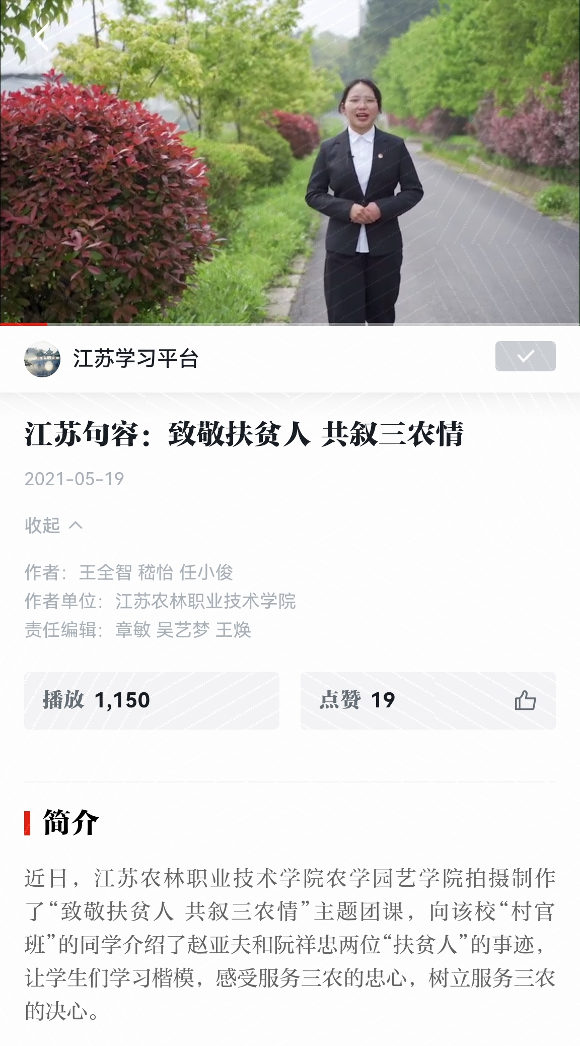拍摄制作了“致敬扶贫人 共叙三农情”主题团课,向该校“村官班”的同学介绍了赵亚夫和阮祥忠两位“扶贫人”的事迹,让学生们学习楷模,感受服务三农的忠心,树立服务三农的决心。