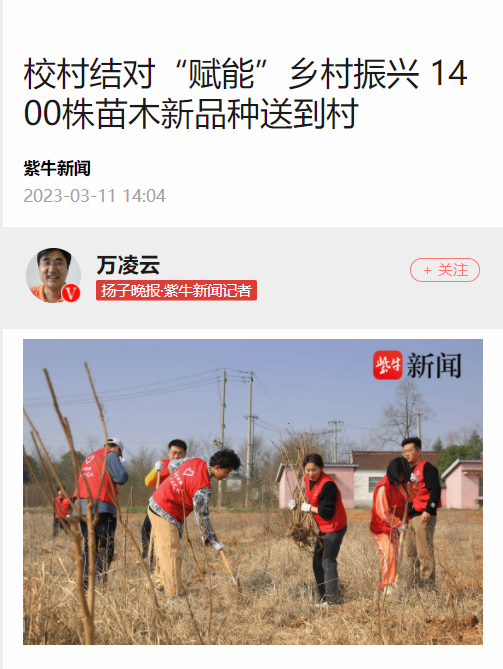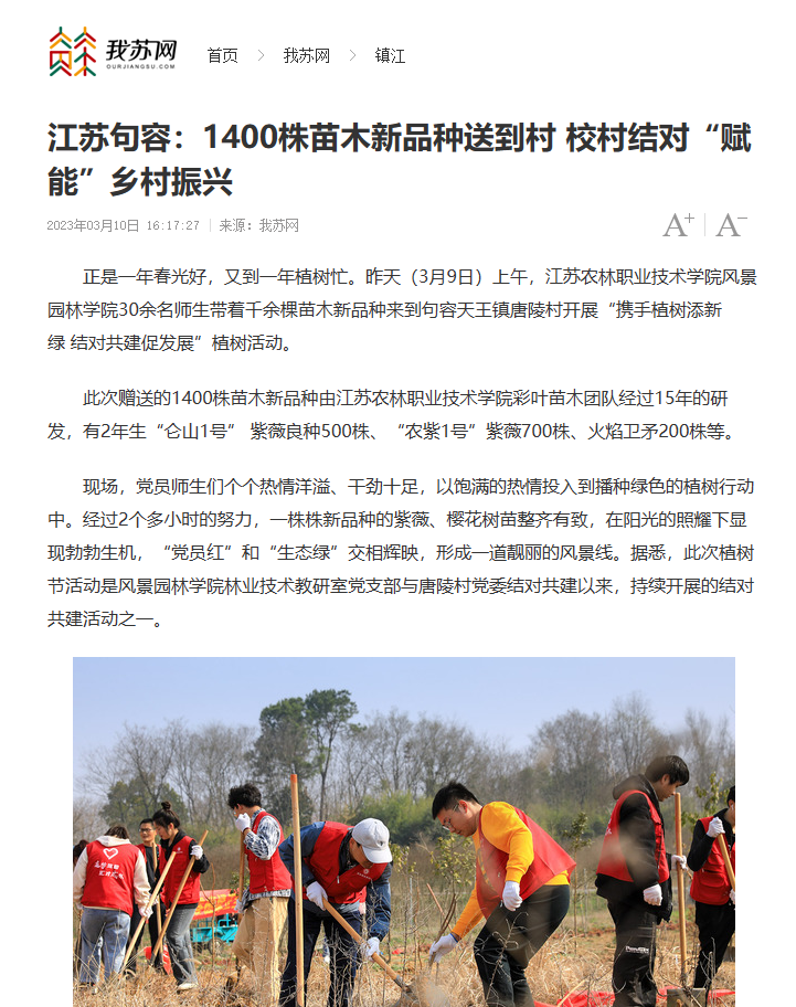 【我苏网】江苏句容:1400株苗木新品种送到村 校村结对“赋能”乡村振兴