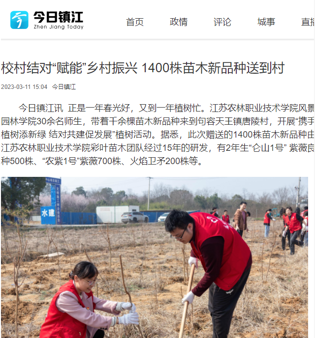 【今日镇江】校村结对“赋能”乡村振兴 1400株苗木新品种送到村
