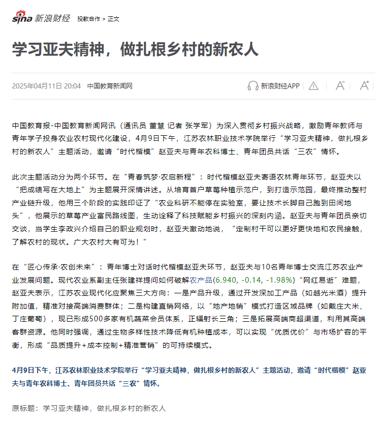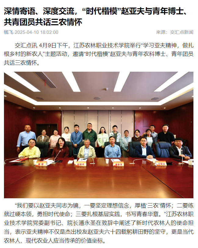 上一条:【江苏新闻频道】报道我院“科技小院”项目建设成果