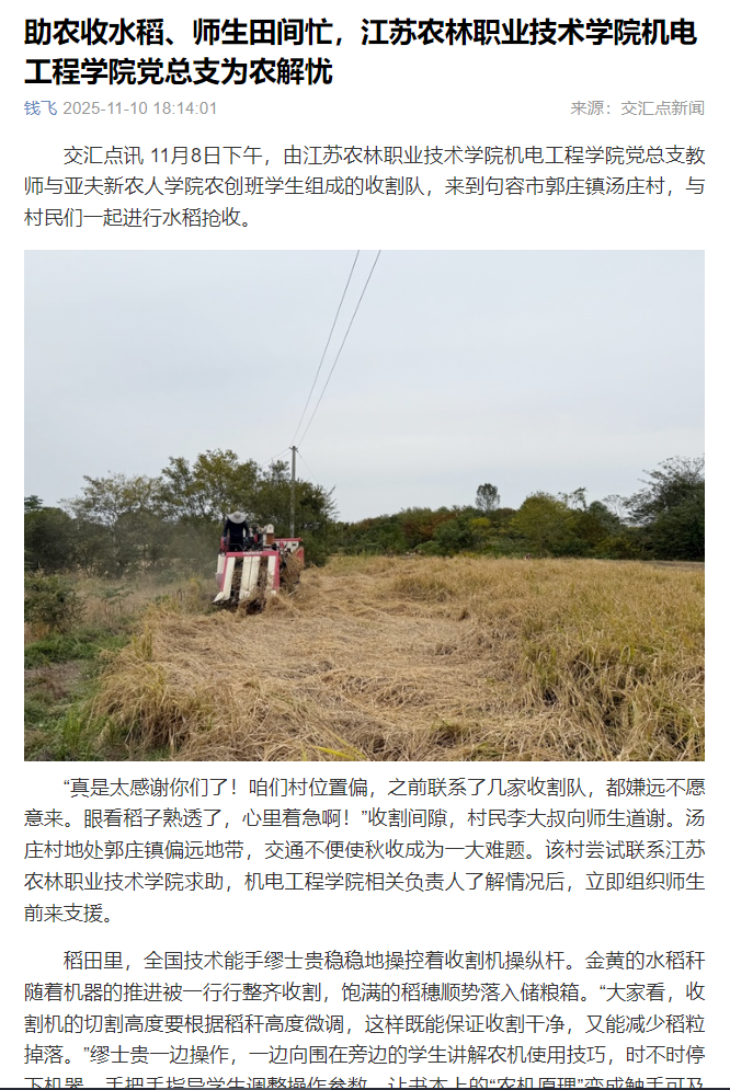 下一条:【江苏教育发布】微信报道农学园艺色花堂 “金色稻田庆丰收 耕读教育润心田”信仰公开课